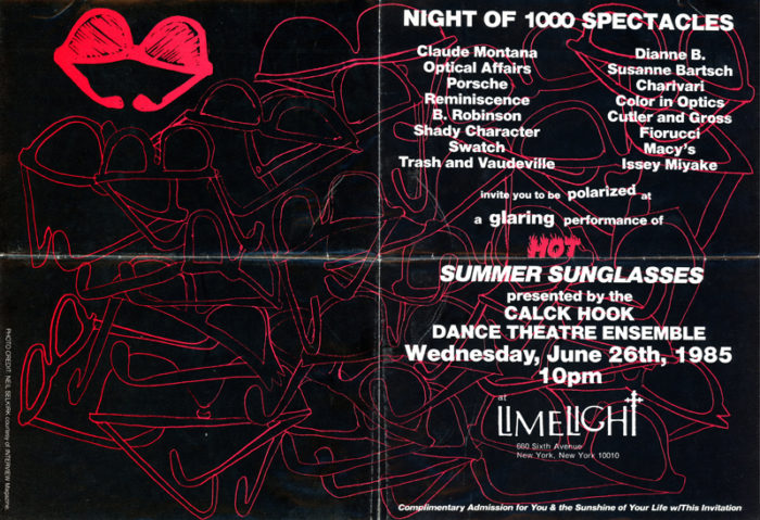 Limelight, Summer Sunglasses, Issey Miyake, Fiorucci, Dianne B., Trash and Vaudeville, Folded Poster, 1985