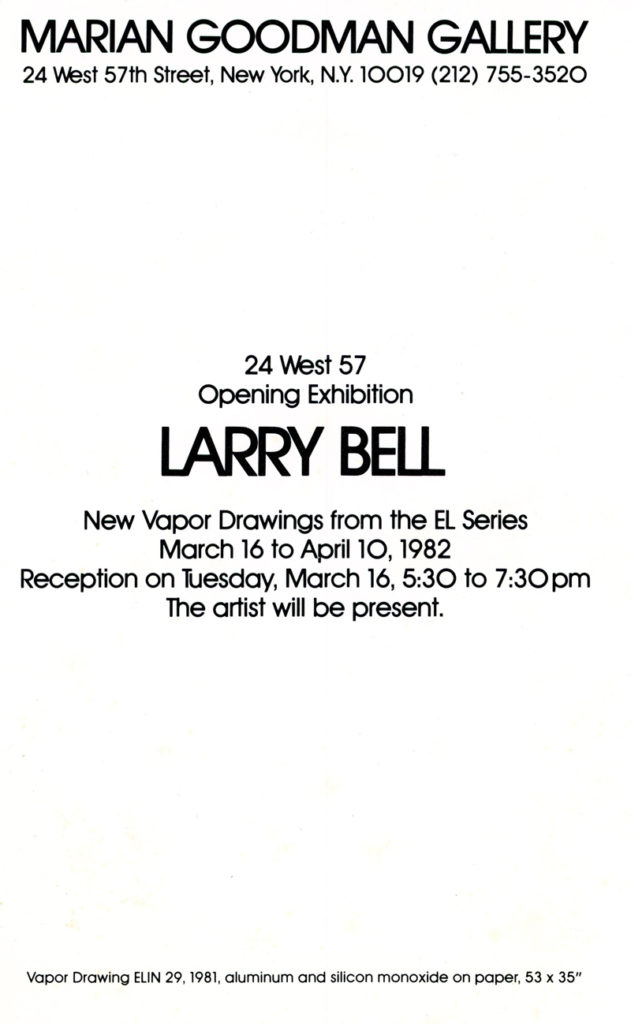 Larry Bell, Marian Goodman Gallery, Card, 1982