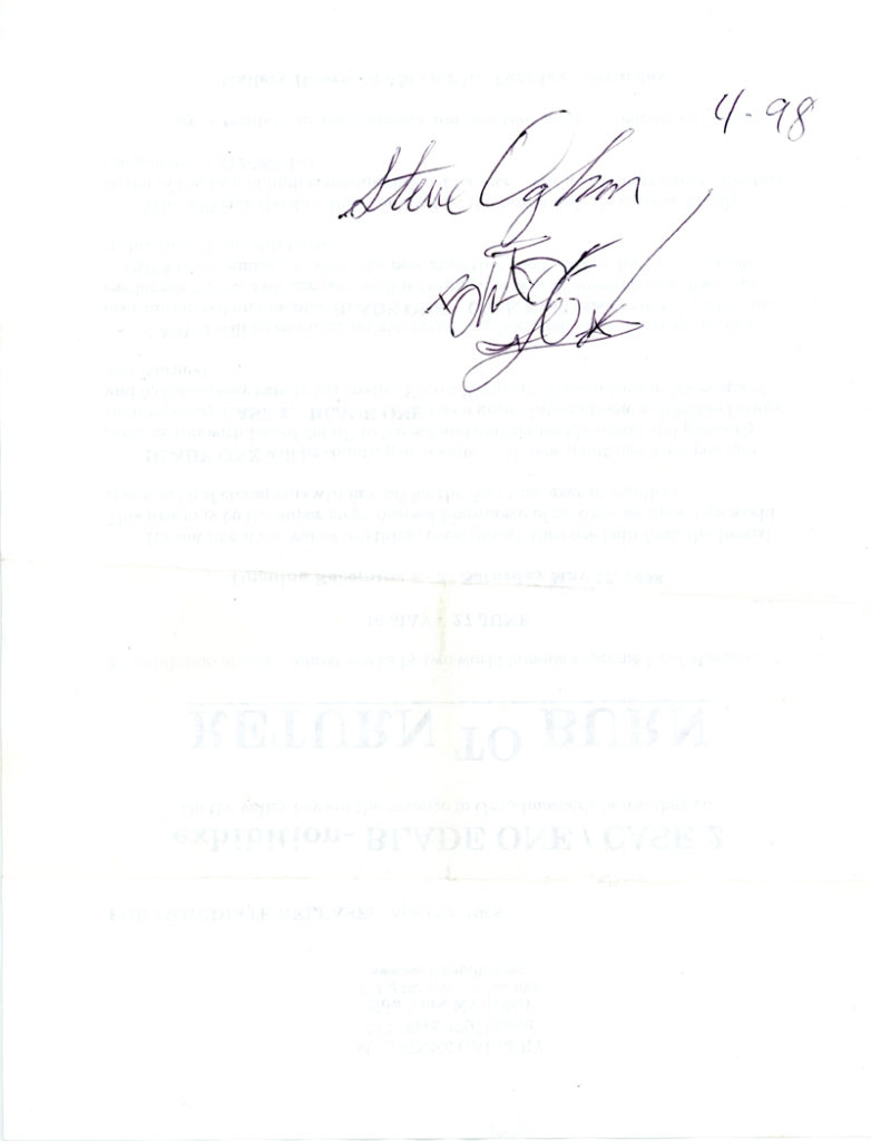 Martinez Gallery, BLADE ONE & CASE 2, Return To Burn, Signed, Press Release, 1998