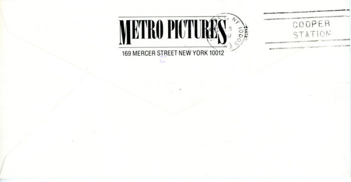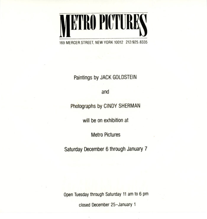 Metro Pictures, Jack Goldstein, Cindy Sherman, Folded Flyer + Envelope, December 6 1980 – January 7 1981. This is Cindy Sherman’s first show at Metro Pictures.