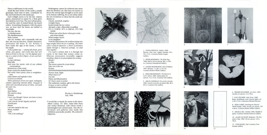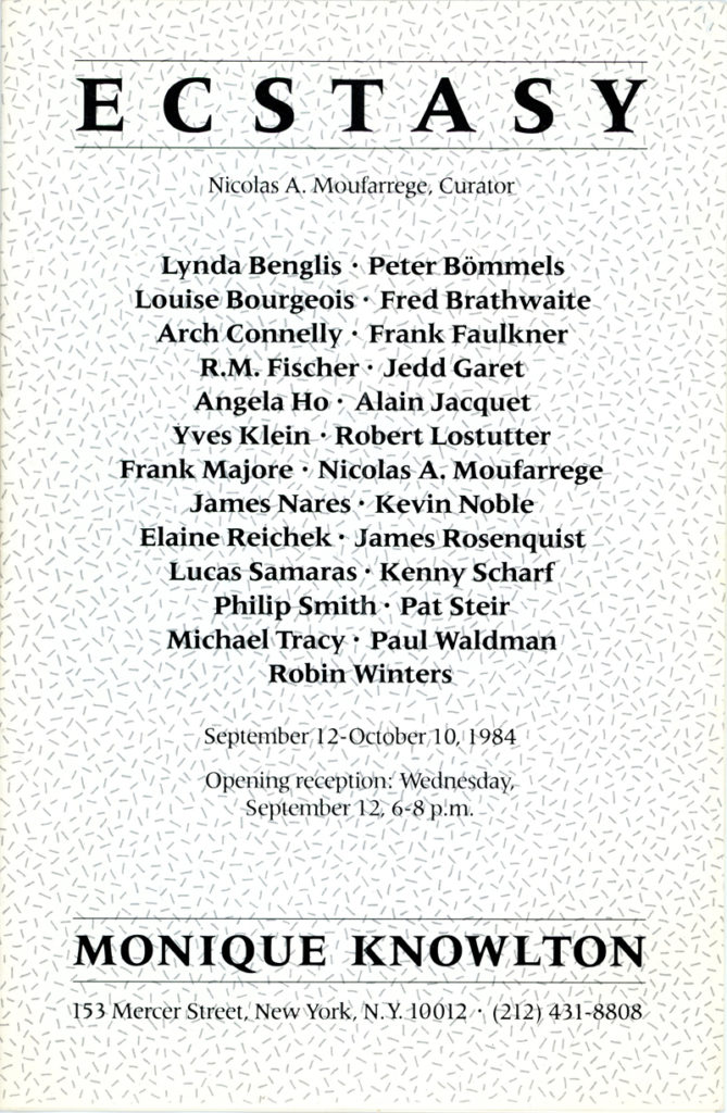 Monique Knowlton Gallery, Ecstasy, Curated by Nicholas Moufarrege, Arch Connelly, James Nares, Lucas Samaras, Louise Bourgeois, Linda Benglis, Three-Fold Pamphlet, 1984