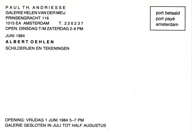 Albert Oehlen, Paul Andriesse Gallery & Helen van der Meij Gallery, Card, 1984
