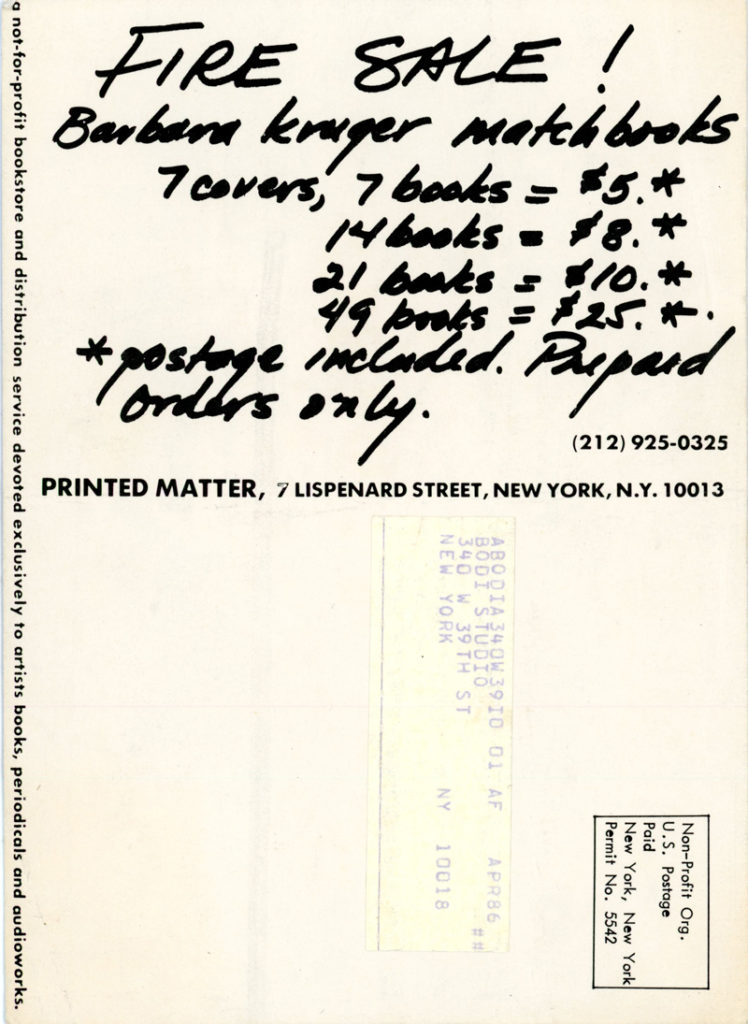 Barbara Kruger, Matchbooks, Card, Printed Matter, 1986