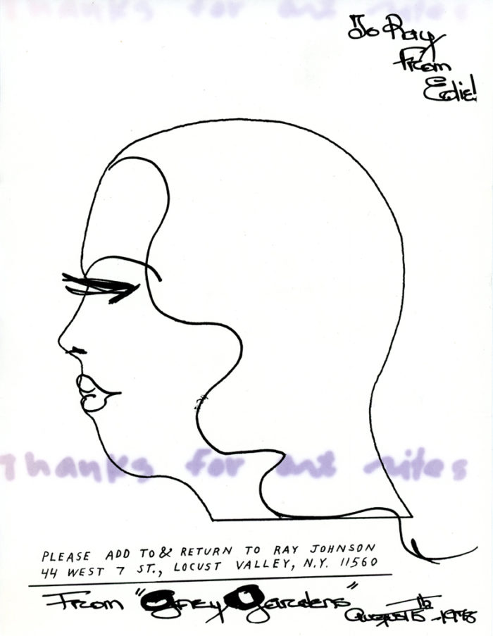 Ray Johnson, Grey Gardens, Xerox Photocopy with handwritten note to Edit DeAk, 1978
