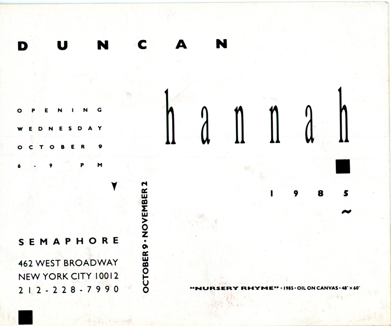 Duncan Hannah, Card, Semaphore Gallery, 1984