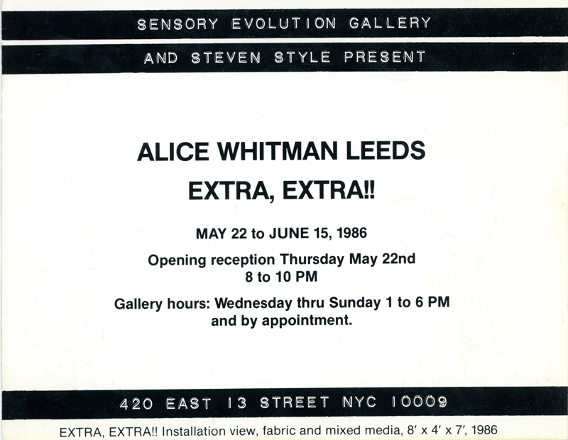 Sensory Evolution Gallery, Alice Whitman Leeds Extra, Extra, Card and Newspaper, 1986
