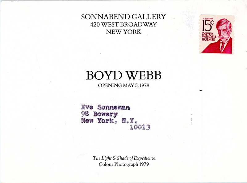 Sonnabend Gallery, Boyd Webb, Card, 1979