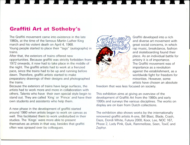 Sotheby’s Amsterdam, The Writing on the Wall, Graffiti auction catalog, 2003