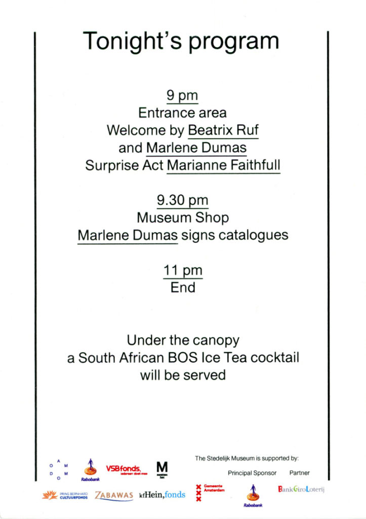 Marlene Dumas, Broken English (Homage to Marianne Faithfull), Card and Registration Form, Stedelijk Museum, 2014