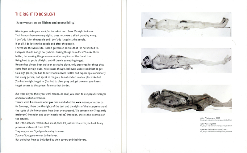 Marlene Dumas, It Is Very Simple Eros Is About Coming and Death About Going Somewhere, Foldout Brochure, The Armory Show, 2004