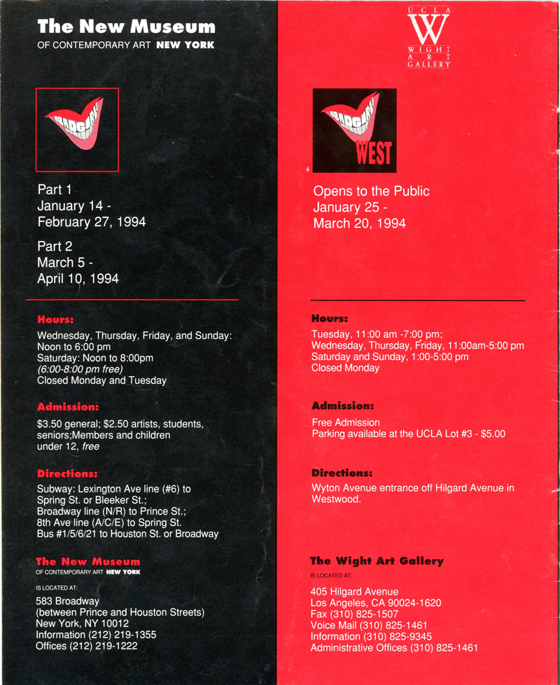 The New Museum, Wight Art Gallery (Los Angeles, Bad Girls, Bad Girls West, Cover Art by Nancy Dwyer, Marcia Tucker, Marcia Tanner, 20 Page Brochure, 1994