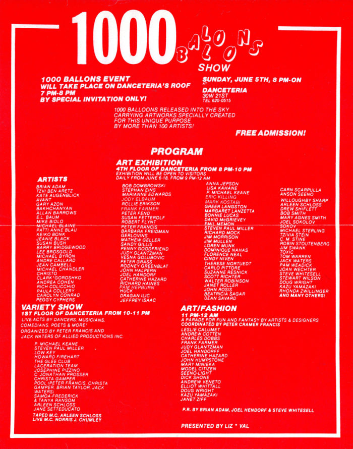 1000 Balloons Released in the Sky with Designs by 100 Artists, Flyer, Danceteria Rooftop, 1983