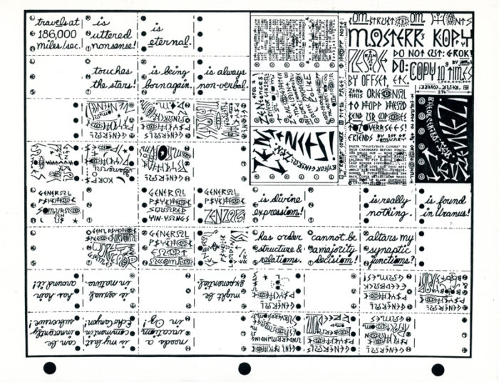 Adam Purple, Enlarged Sheet from “”Zentences” a Book Project Which Began in 1967 and is Continuously Subject to Alterations, c. 1973