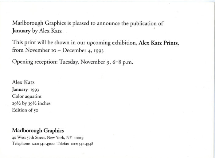 Alex Katz, January, Card, Marlborough Graphics, 1993