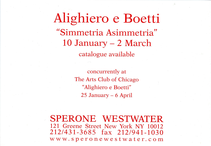 Alighiero Boetti, Symmetry Asymmetry, Card, Sperone Westwater Gallery, 2002