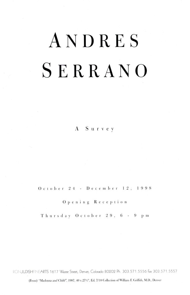 Andres Serrano, A Survey, Card, Ron Judish Fine Arts (Colorado), 1998