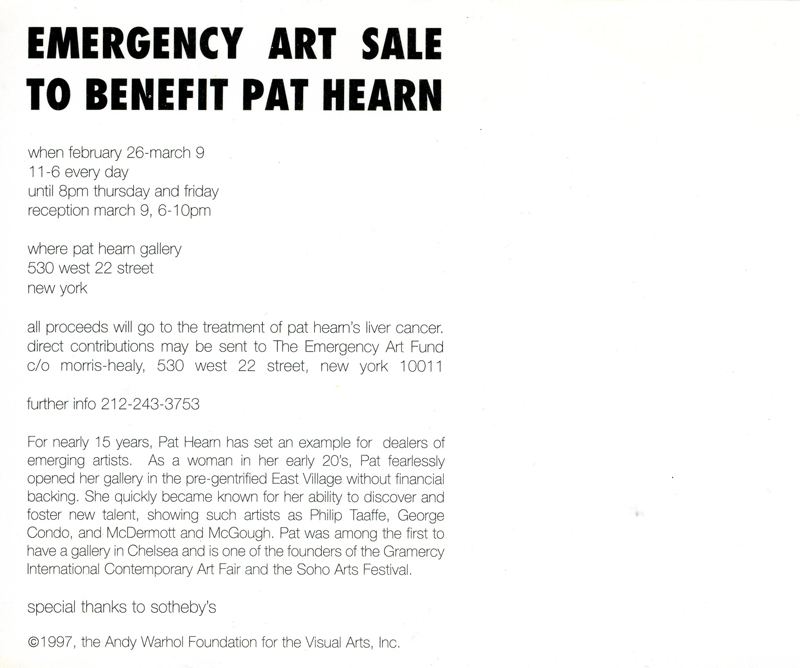 Andy Warhol, “Pat Hearn” (1985), Card for Emergency Art Sale To Benefit Pat Hearn, Pat Hearn Gallery, 1998