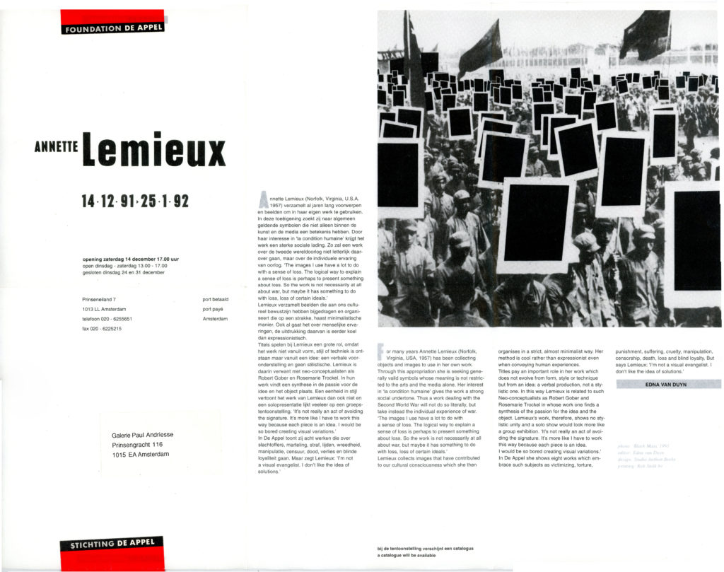 Annette Lemieux, Fold-Out Brochure Mailer, Foundation De Appel (Amsterdam), 1991