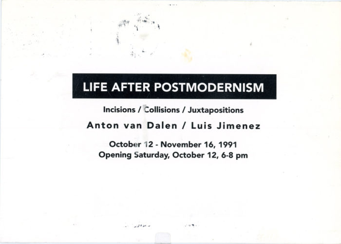 Anton van Dalen & Luis Jimenez, Life After Postmodernism, Folded Card, The Cultural Space, 1991