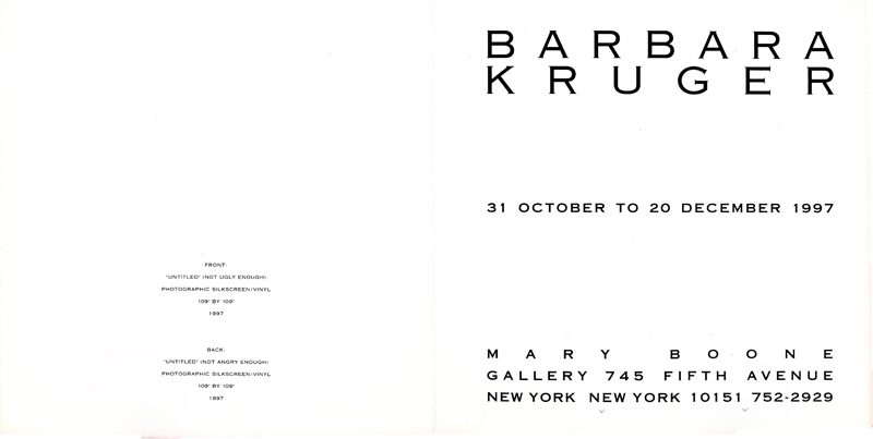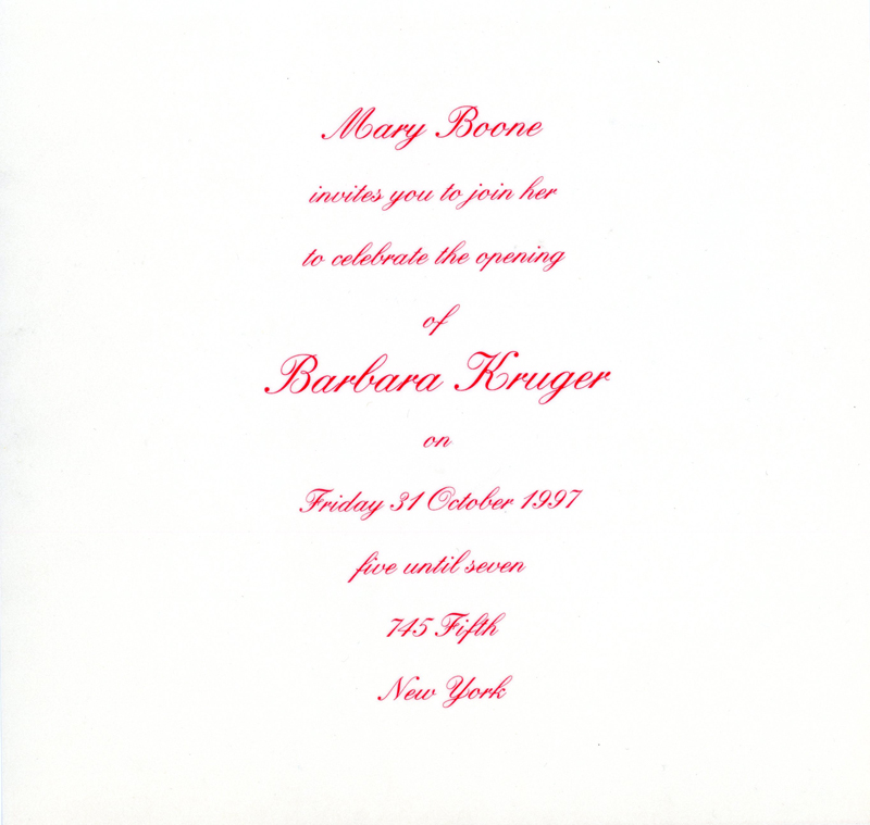 Barbara Kruger, Folded Card with Insert, Mary Boone Gallery, 1997