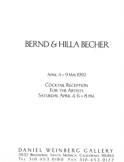 Bernd and Hilla Becher Bernd Becher Daniel Weinberg Gallery Hilla Becher