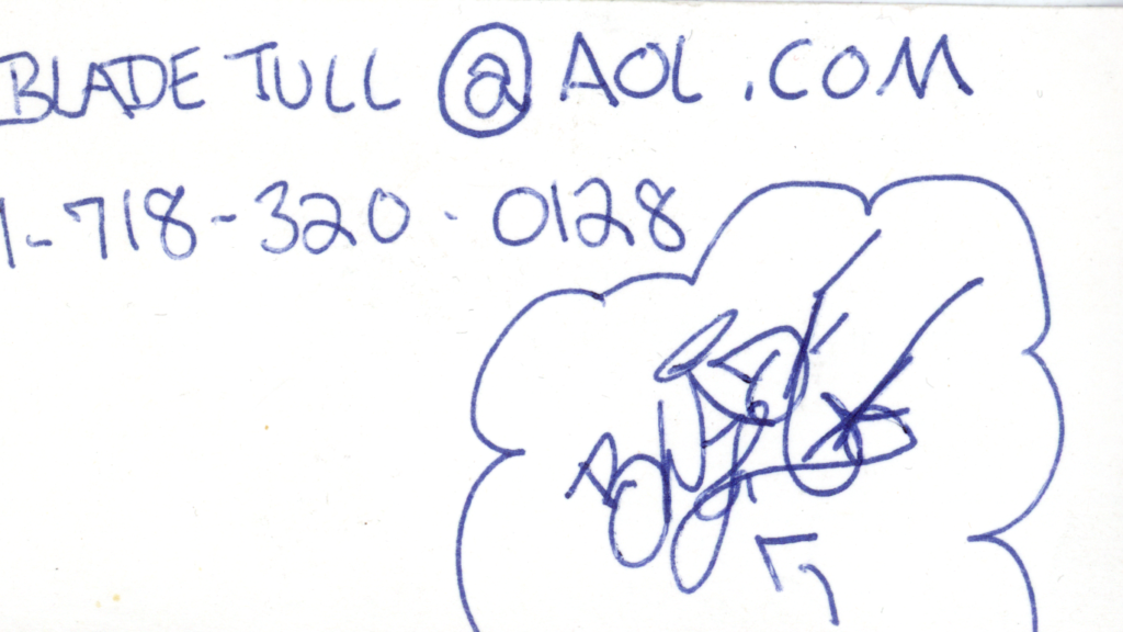 Blade, Business Card with Website; Email and Phone Number handwritten on back, ND