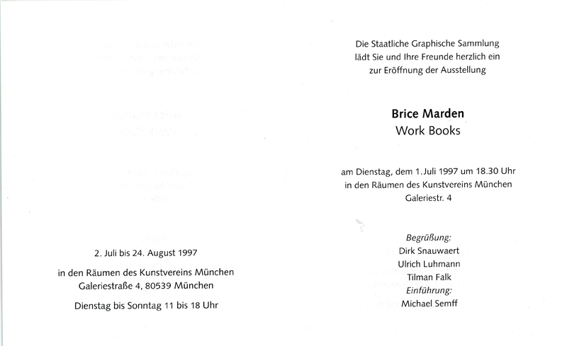 Brice Marden, Work Books, Kunstverein Munchen (Germany), Folded Card, 1997