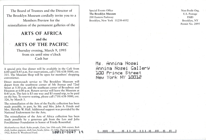 Brooklyn Museum, Arts of Africa, Arts of the Pacific, Card, 1995