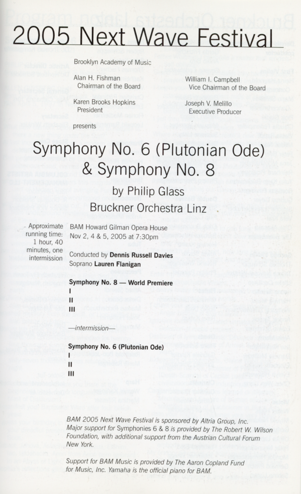 Brooklyn Music Academy, 2005 Next Wave Festival, with Phillip Glass, 62-Page Guide, 2005