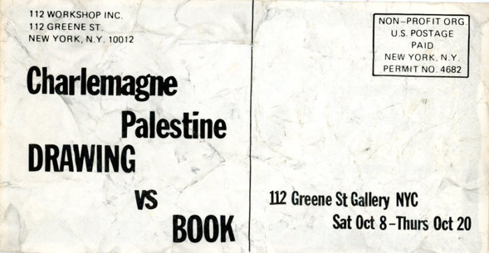 Charlemagne Palestine, Drawings vs Book, Card, 112 Greene St Gallery, 1977