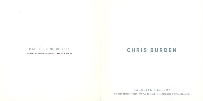 Chris Burden, “Chris Burden Promo” (1976), Folded Card, Gagosian Gallery, 2000