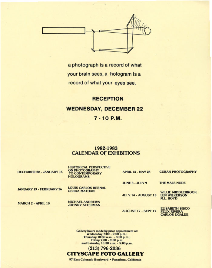 Cityscape Foto Gallery, Calendar of Exhibitions, Folded Card, 1982-1983