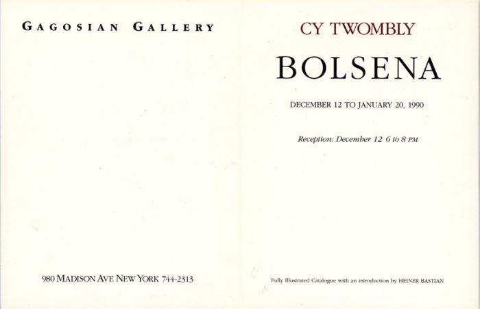Cy Twombly, Bolsena, Folded Card, Gagosian Gallery, 1990
