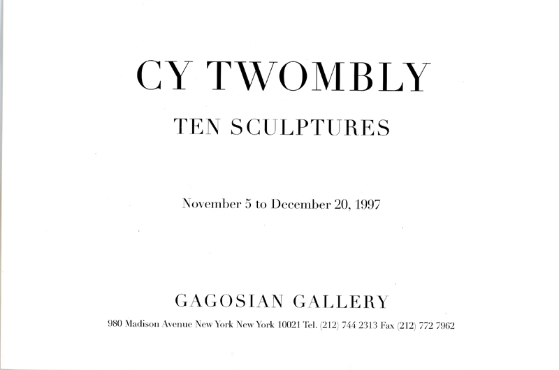 Cy Twombly, Ten Sculptures, Folded Card, Gagosian Gallery, 1997