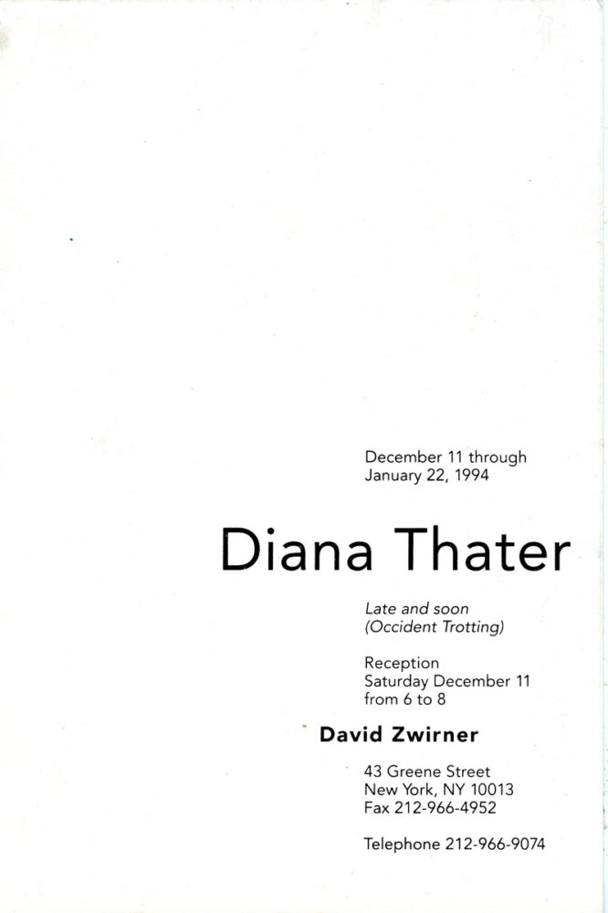 Diana Thater, Late and soon (Occident Trotting), Card, David Zwirner Gallery, 1994