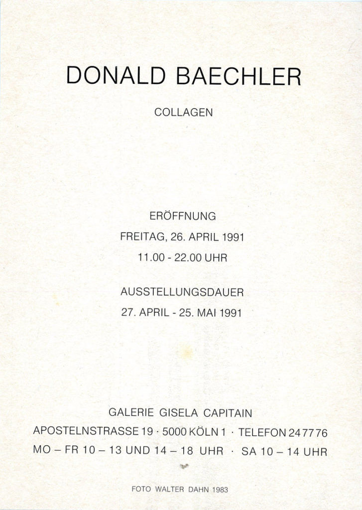 Donald Baechler, Collagen, Card, Photo by Walter Dahn, Gisela Capitain Gallery (Germany), 1991