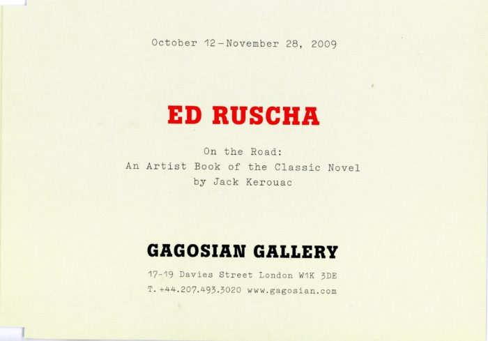 Ed Ruscha, On The Road: An Artist Book of the Classic Novel by Jack Keuroac, Folded Card, Gagosian Gallery, 2009