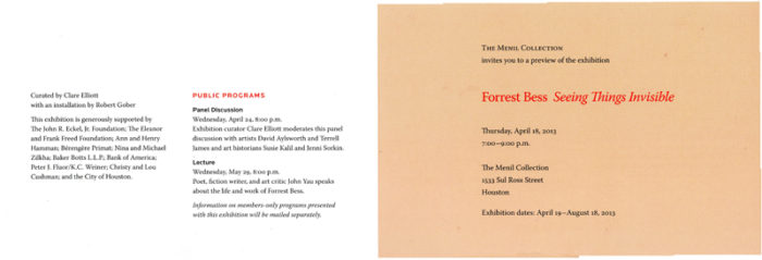 Forrest Bess, Seeing Things Invisible, With an Installation by Robert Gober, Folded Card, The Menil Collection, 2013