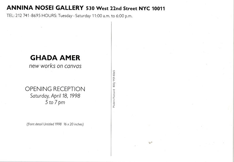 Ghada Amer, Card, Annina Nosei Gallery, 1998