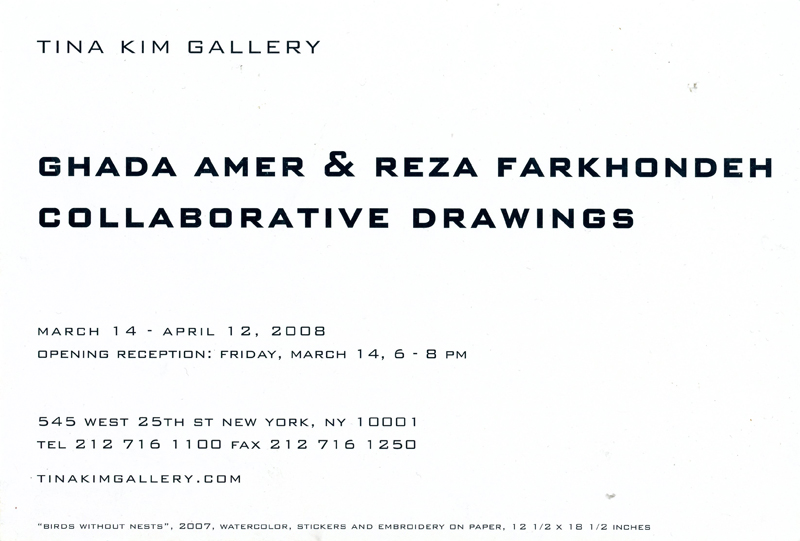 Ghada Amer & Reza Farkhondeh, “Birds Without Nests,” Card, Tina Kim Gallery, 2008