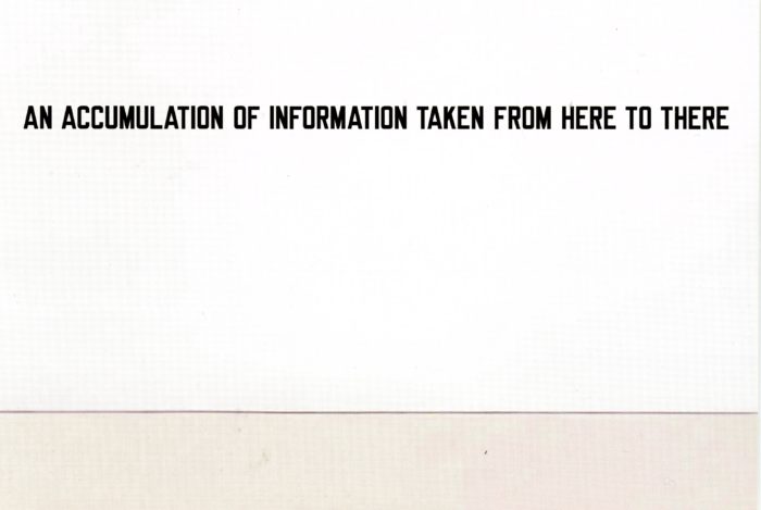 Back of card features Lawrence Weiner’s “An Accumulation of Information Taken from Here to There” (1970)