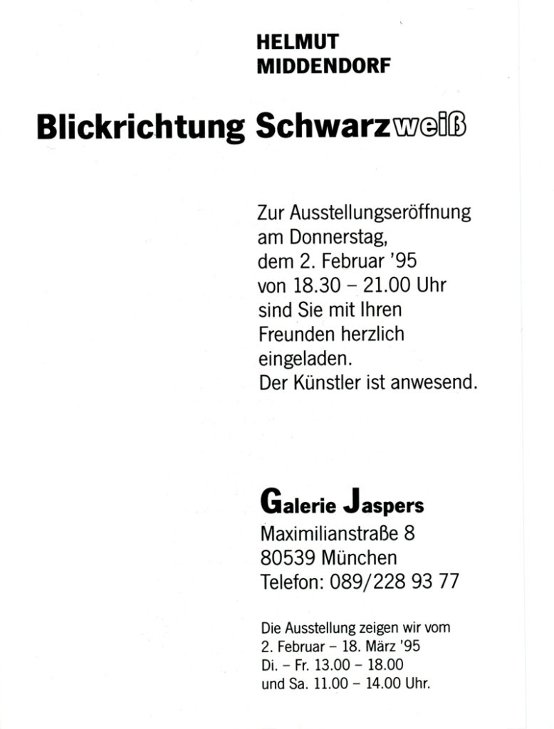 Helmut Middendorf, Line of Sight Black and White, Folded Card with Insert, Jaspers Gallery (Germany), 1995