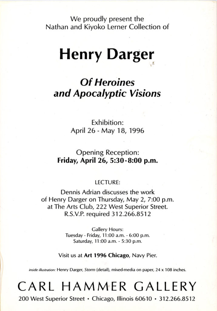 Henry Darger, Of Heroines and Apocalyptic Visions, Two-Fold Card, Carl Hammer Gallery, 1996