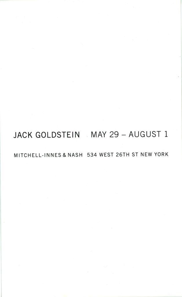 Jack Goldstein, Card, Mitchell-Innes & Nash Gallery, 2008