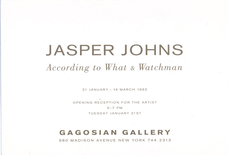 Jasper Johns, According to What & Watchman, Photo by Mark Lancaster, Folded Card, Gagosian Gallery, 1992