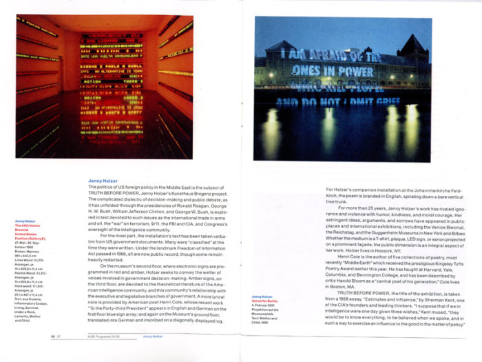 Jenny Holzer, Truth to Power, 23 Page Booklet, Kunsthaus Bregenz (Germany), 2003