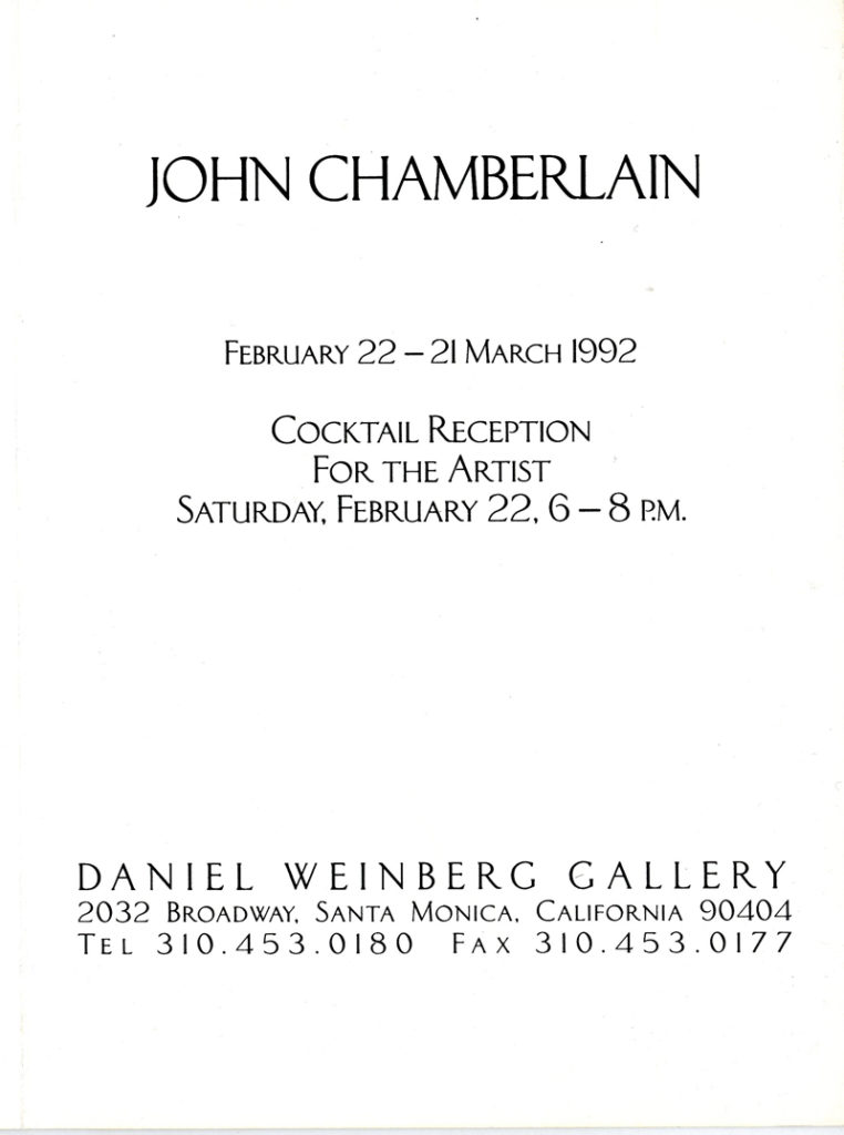 John Chamberlain, Daniel Weinberg Gallery, Card, 1994
