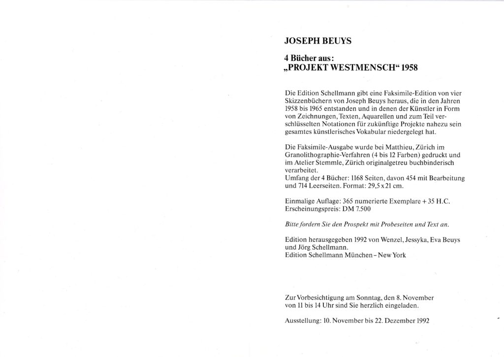 Joseph Beuys, Project Western Man, Edition Schellmann Munich-New York, Folded Card, 1992
