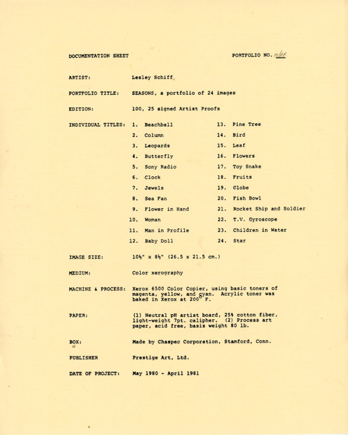 Lesley Schiff, Seasons, SIGNED Portfolio with 24 Original Xerox Prints, 1981