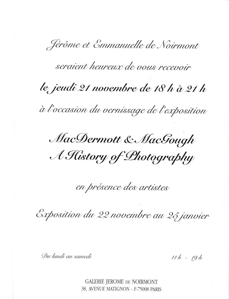 MacDermott & MacGough, A History of Photography, Folded Card, Jerome de Noirmont Gallery (Paris), 2002